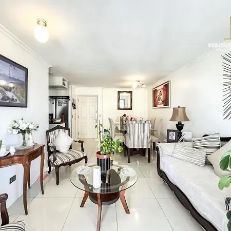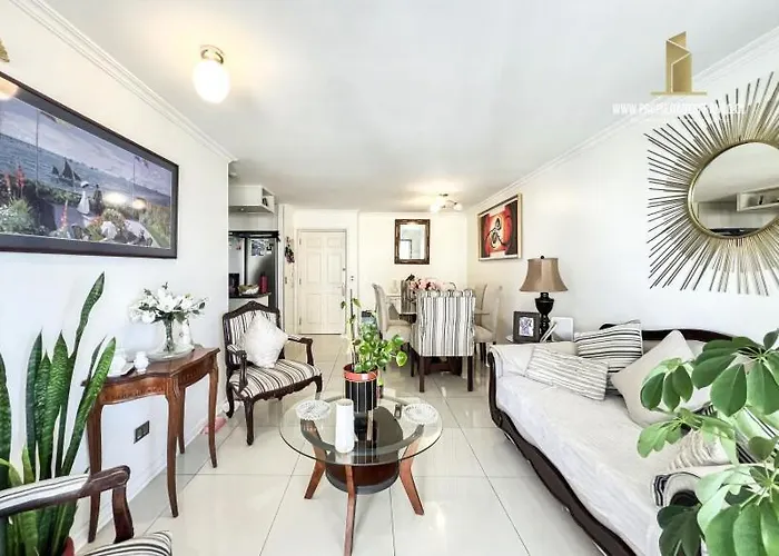 花時計は95m²のAmplio Y Comodo Depto Para 6 Personas Con Vista Al Mar Y Piscina 26 ビニャ・デル・マールアパートからから歩いて25分で、Boulevard Marinaは近くにあります。 テラス付きのアパートはPlaya El Sol少し離れたに位置しています。